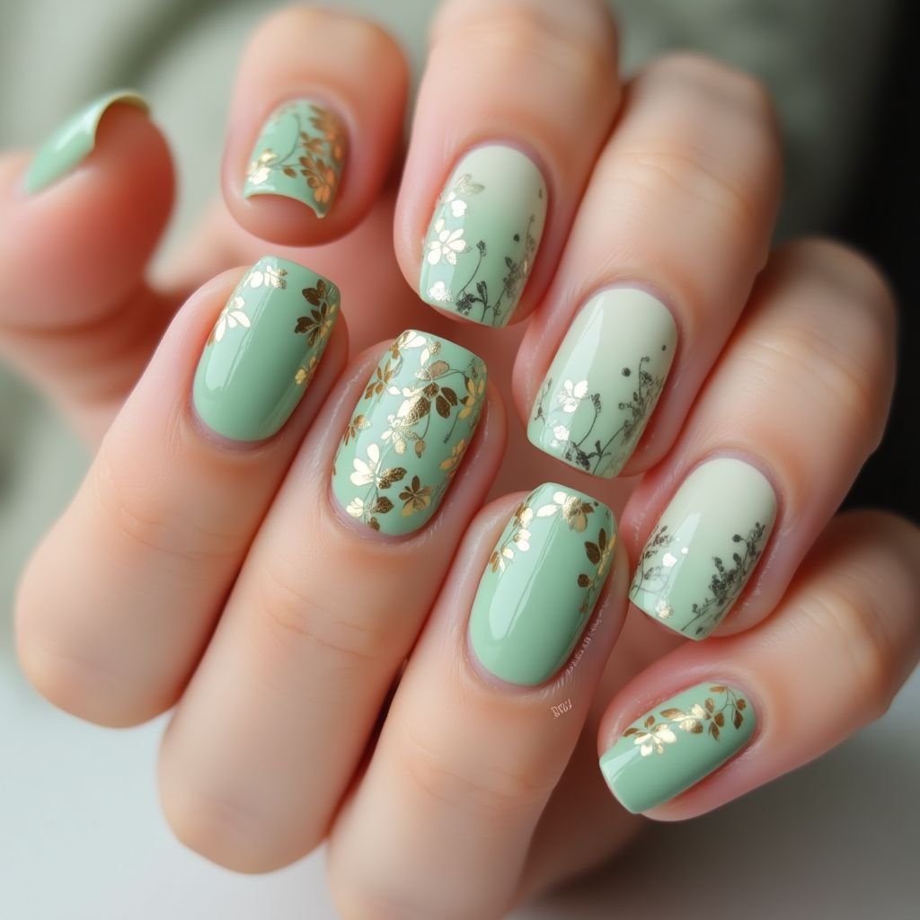 Embrace Whimsy: Pastel Green Freehand Art with Delicate Floral and Geometric Touches